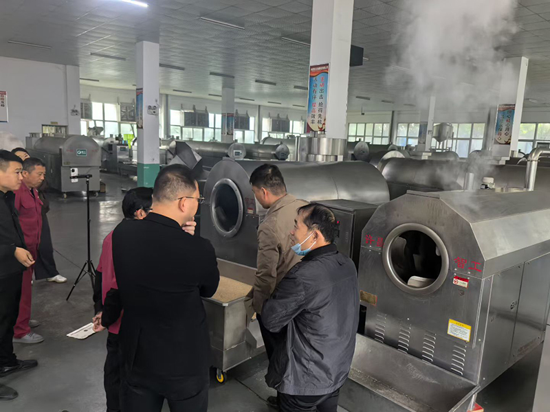 河南平頂山知名芝麻香油廠家來廠試機(jī)考察200斤芝麻炒鍋