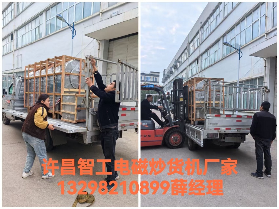 10月19日,7-15型200斤電磁炒貨機(jī)專車發(fā)貨河南鄭州。