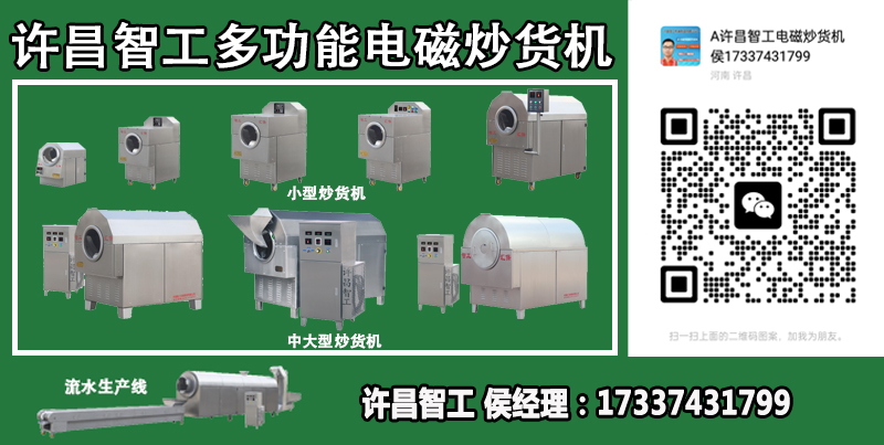 三、操作簡(jiǎn)便:電磁炒貨機(jī)是采用智能控制,操作人員根據(jù)需要可自由設(shè)定,因此安全性高(無炒糊和無火災(zāi)現(xiàn)象),炒制品質(zhì)一致,換班換人都不影響炒制品的品質(zhì)。